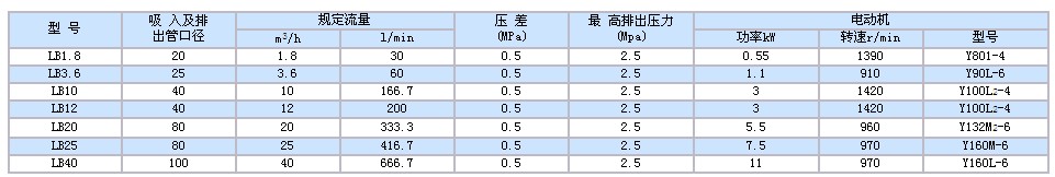 LB型冷凍機(jī)用齒輪泵性能參 數(shù)及配套電機(jī)表: