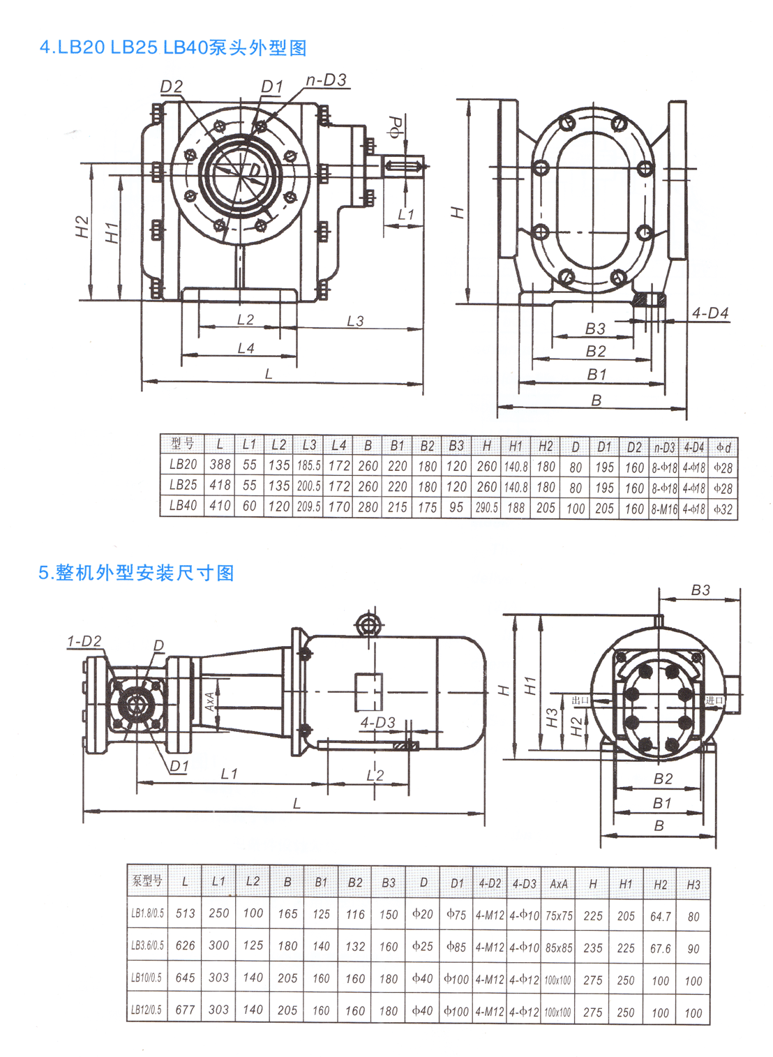 LB型冷凍機(jī)用齒輪泵外形及 安裝尺寸: